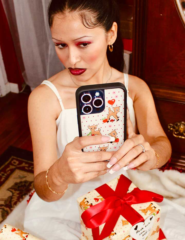We’re in love with our Chocolate Cherries AirPods Max Cover. A decadent chocolate hue is the backdrop for little cherry fruits and hearts falling across this design. Since Wildflower is all about the details. some of our heart-shaped cherries are even adorned with baby pink bows. Press play on your French-inspired playlist. mon chéri.