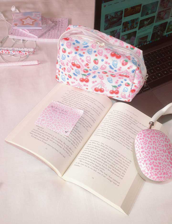 Storing your essentials has never looked this pretty. Meet our new Sweet Cherries Perfect Pouch. for anyone who loves style and organization. Whether you need a pouch to store your pens. makeup collection. or self-care supplies. our perfect pouches are here to help!